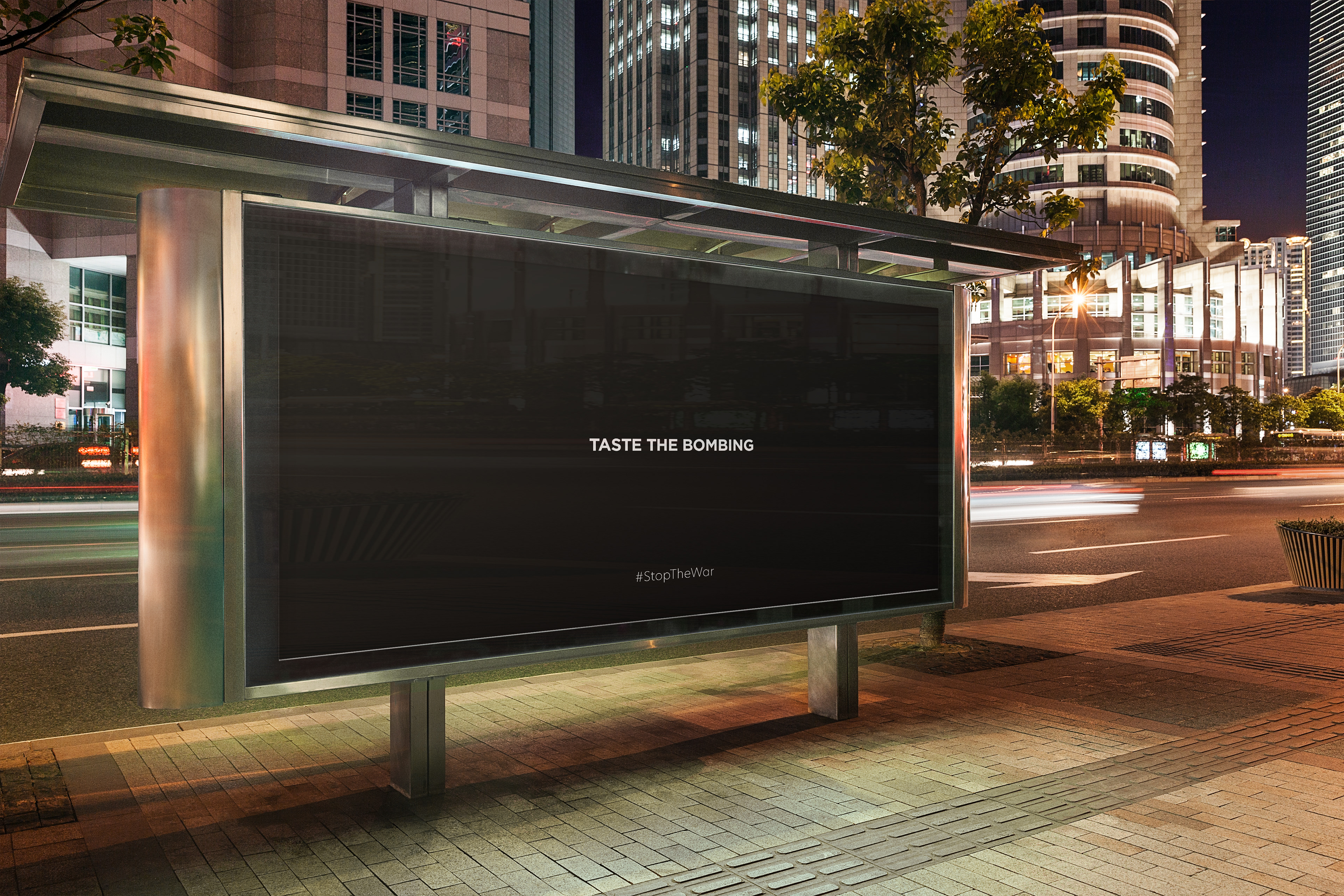 Üniversite eğitimimizin son senesinde, "Reklamcılık Bilgileri" dersinde final projesi olarak; bizden ortaya yaratıcı bir fikir ile oluşturulmuş, dikkat çekici bir reklam filmi yapmamız istendi. Biz de savaşa destek veren ya da masum insanların acı çekmesine engel olmayı tercih etmeyen büyük markaları ele aldık.